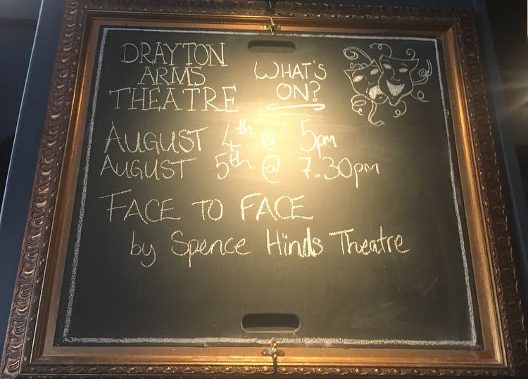 Face to Face was performed as a rehearsed reading at The Drayton Arms Theatre in August 2019 with Spence-Hinds Theatre.